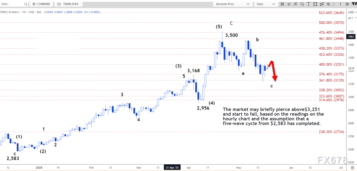 即使跌破 3206 美元并随后跌至 3176 美元也不会改变当前读数,因为下跌可能是由于 b 浪的延伸。