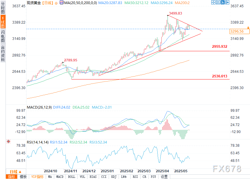 上周五,特朗普威胁称,由于贸易谈判进展缓慢,将于6月1日对欧盟征收50%的关税,这一消息推高了金价。但随着情况改善,关税被推迟到原定的7月截止日期,金价回吐了所有涨幅。