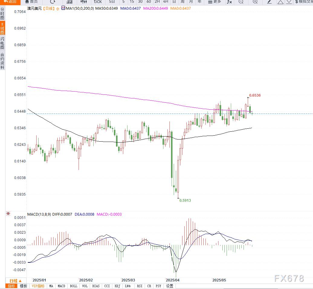 尽管澳洲CPI略超预期,但市场显然更关注RBA继续宽松的可能性。而美元则凭借强劲数据和避险情绪持续获得支撑。技术上AUD/USD已跌破0.6450短期均线,若通道下轨失守,则可能出现更深回调。