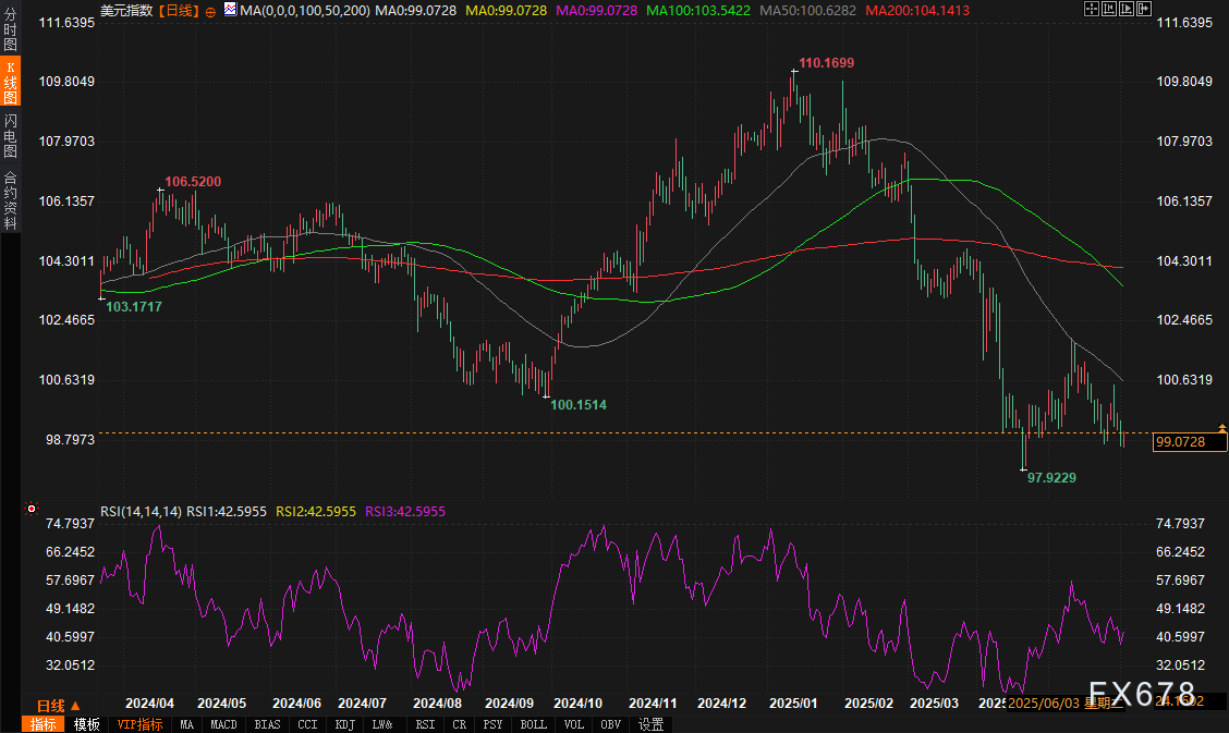 - 支撑区域:98.50附近存在2024年12月及2025年3月双底支撑,若日线收盘有效跌破,可能打开跌向97.50(2022年8月低点)的空间。