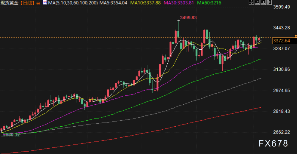 金价周三上涨近1%,受美元走软和美国数据疲软的支撑,投资者努力应对日益加剧的经济和政治不确定性。现货金攀升0.8%,至每盎司3,378.22美元,此前曾上涨1%。美国期金 收高0.7%,报3399.20美元。