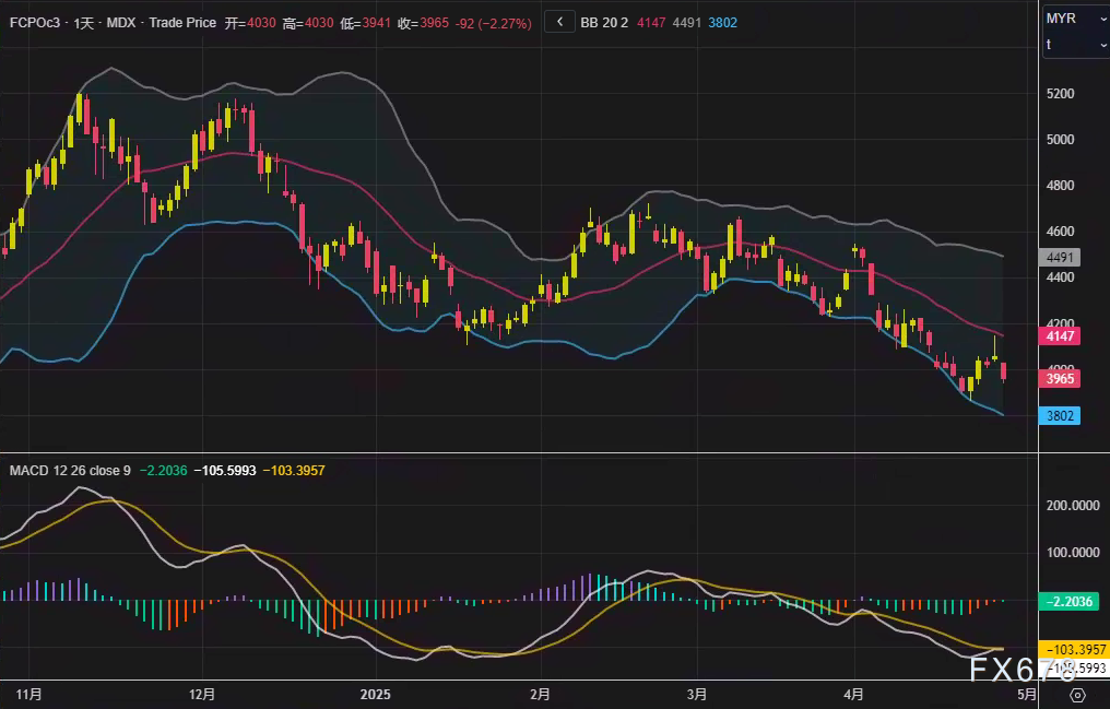马来西亚棕榈油局(MPOB)预计于5月13日发布4月供需数据。知名机构调查显示,4月棕榈油产量较3月激增10.3%,市场普遍预期库存将实现六个月来首次上升。这一变化打破了此前因季节性减产导致的供应紧张格局。产量回升主要得益于马来西亚主要产区天气条件改善,棕榈果采收效率提升。然而,库存上升可能对价格形成进一步压力,尤其是当前市场情绪已因外部油脂市场走弱而偏谨慎。   出口方面,船运机构估算4月1日至25日马来西亚棕榈油产品出口量较上月同期增长13.8%至14.8%。这一数据超出市场预期,显示全球需求依然稳健。值得注意的是,马来西亚驻英国高级官员拿督Zakri Jaafar透露,4月初8000吨沙巴棕榈油以零关税进入英国利物浦港,标志着《全面与进步跨太平洋伙伴关系协定》(CPTPP)框架下马来西亚棕榈油对英贸易的突破。CPTPP的生效为马来西亚棕榈油开拓欧洲市场打开新窗口,长期看有望巩固其出口竞争力。   棕榈油价格与全球植物油市场高度联动。4月28日,大连商品交易所豆油主力合约下跌1.54%,棕榈油合约下跌2.15%,芝加哥商品交易所(CBOT)豆油合约下跌1.12%。芝加哥豆油的疲软直接拖累棕榈油期货,反映出全球植物油需求短期放缓的信号。此外,林吉特兑美元汇率上涨0.23%,使得棕榈油对持有外币的买家更昂贵,进一步抑制了国际市场需求。   原油市场方面,油价保持稳定,投资者关注全球经济增长前景及OPEC+供应政策的不确定性。原油价格的平稳为棕榈油作为生物柴油原料提供一定支撑,但当前植物油市场的整体疲态限制了这一利好的发挥。交易者需密切关注原油价格的后续走势,若油价显著上行,可能为棕榈油价格提供一定底部支撑。   吉隆坡交易公司Iceberg X Sdn Bhd的交易员David Ng对当前市场给出明确判断:“棕榈油期货下跌主要是由于芝加哥豆油市场的疲软,以及市场预期未来几周产量将增加?!彼徊街赋?“我们预计支撑位在3900林吉特,阻力位在4080林吉特。”这一区间为交易者提供了短期操作的参考框架。3900林吉特的支撑位若有效,可能吸引买盘入场,而4080林吉特的阻力位则需突破以扭转当前弱势格局。   值得注意的是,市场对未来走势的分歧正在加大。部分机构认为,产量增加和库存回升可能在5月进一步压低价格,尤其是在外部油脂市场未见起色的情况下。然而,出口数据超预期及CPTPP带来的贸易红利为市场注入乐观因素。长期看,生物柴油需求的潜在增长仍是关键变量。马来西亚和印尼作为全球棕榈油主要产国,其生物柴油政策调整可能对供需格局产生深远影响。   当前棕榈油市场正处于多空交织的复杂局面。短期内,产量预期升温和外部油脂市场疲软主导价格下行,3961林吉特的收盘价已逼近3900林吉特的支撑位,交易者需警惕进一步下探风险。然而,出口数据亮眼及CPTPP带来的贸易机遇为市场提供一定韧性。长期看,生物柴油需求的增长潜力及原油价格走势仍是关键变量。若外部油脂市场企稳或原油价格上行,棕榈油可能在3900林吉特附近找到支撑并尝试反弹;反之,若库存持续累积且需求未见起色,价格或将进一步承压。