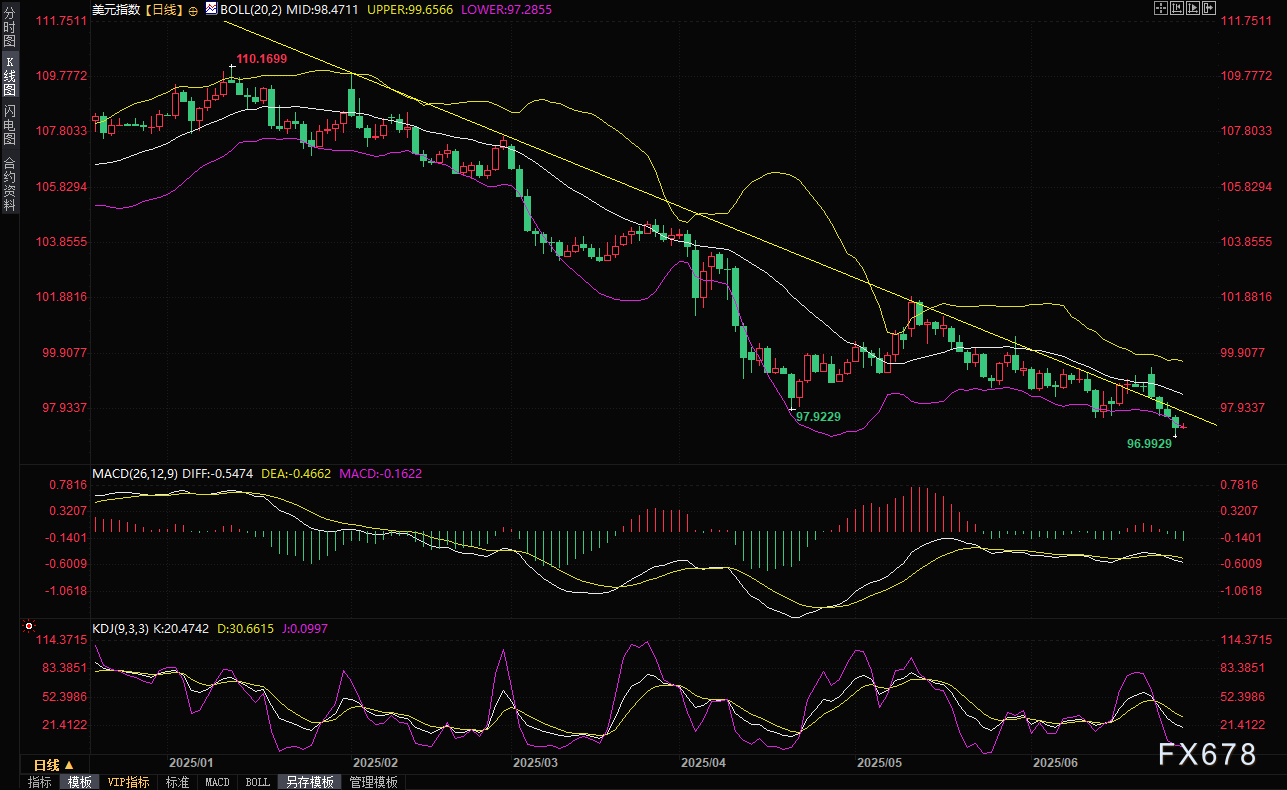 Pepperstone激石——美元正经历一场前所未有的低谷,周五(6月27日)美元指数徘徊在三年半以来的最低点附近,交易员们正密切关注美国货币政策的风向转变。与此同时,欧元和英镑强势崛起,守在隔夜触及2021年底以来的最高水平附近,而特朗普即将到来的关税最后期限,更是为市场增添了一层紧张气氛。美联储主席鲍威尔的继任者传闻、鸽派政策预期、以及地缘政治局势的缓和,共同塑造了当前汇市的复杂格局。